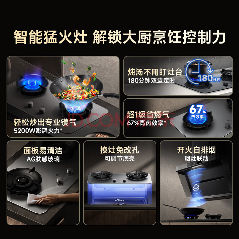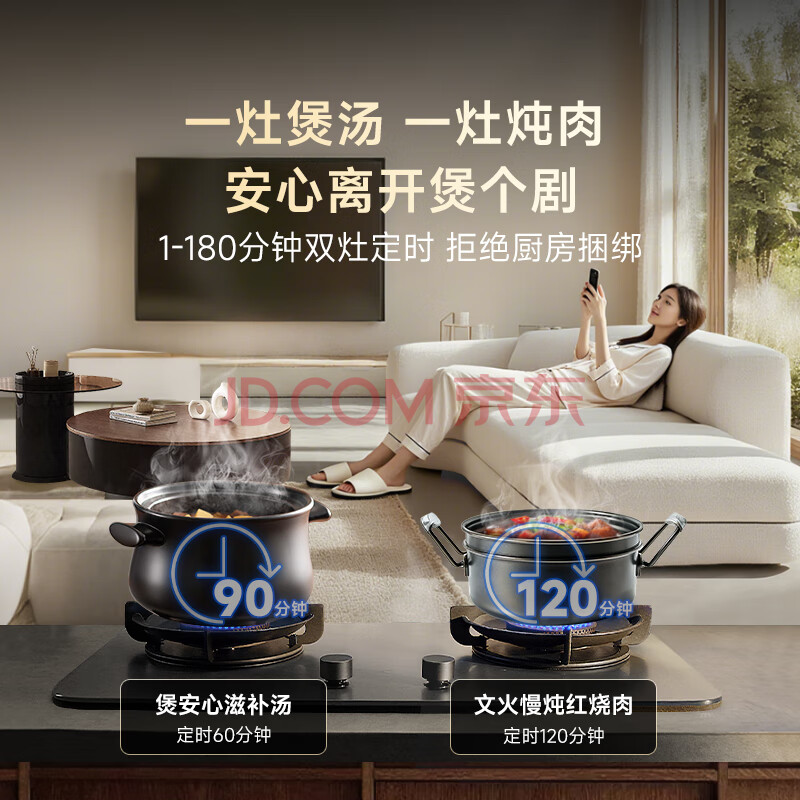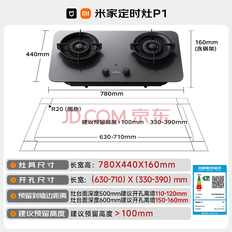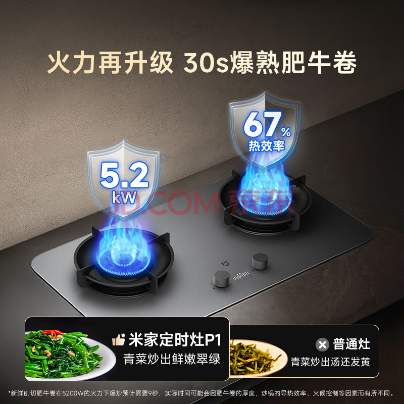 商品相册:米家小米燃气灶天然气P1双边定时家用5.2kW猛火灶具AG玻璃易清洁【搭配净烟机】MJ03CY第