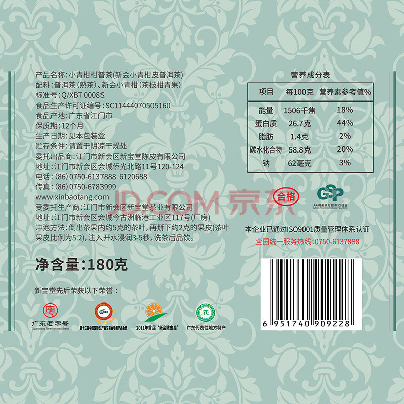 商品相册:岭南新宝堂 柑普茶套盒180g 新会柑普茶普洱熟茶第