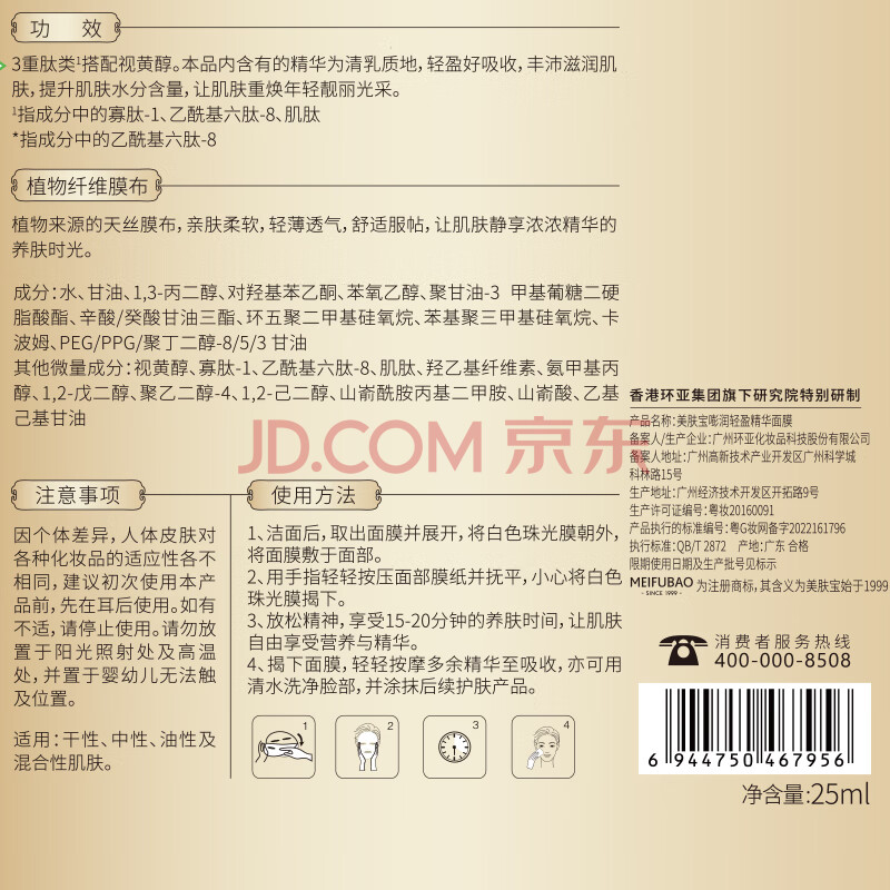 商品相册:美肤宝嘭润轻盈精华面膜25g*5片六胜肽精华补水水润护肤面膜贴男女第