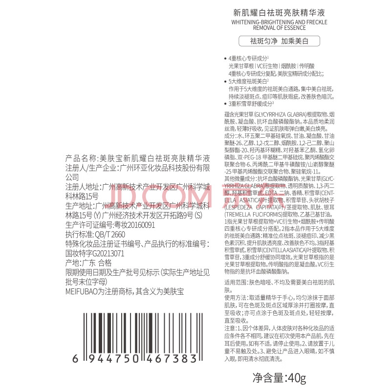 商品相册:美肤宝新肌耀白祛斑亮肤精华液40g淡斑淡化痘印改善黯哑提亮护肤女第