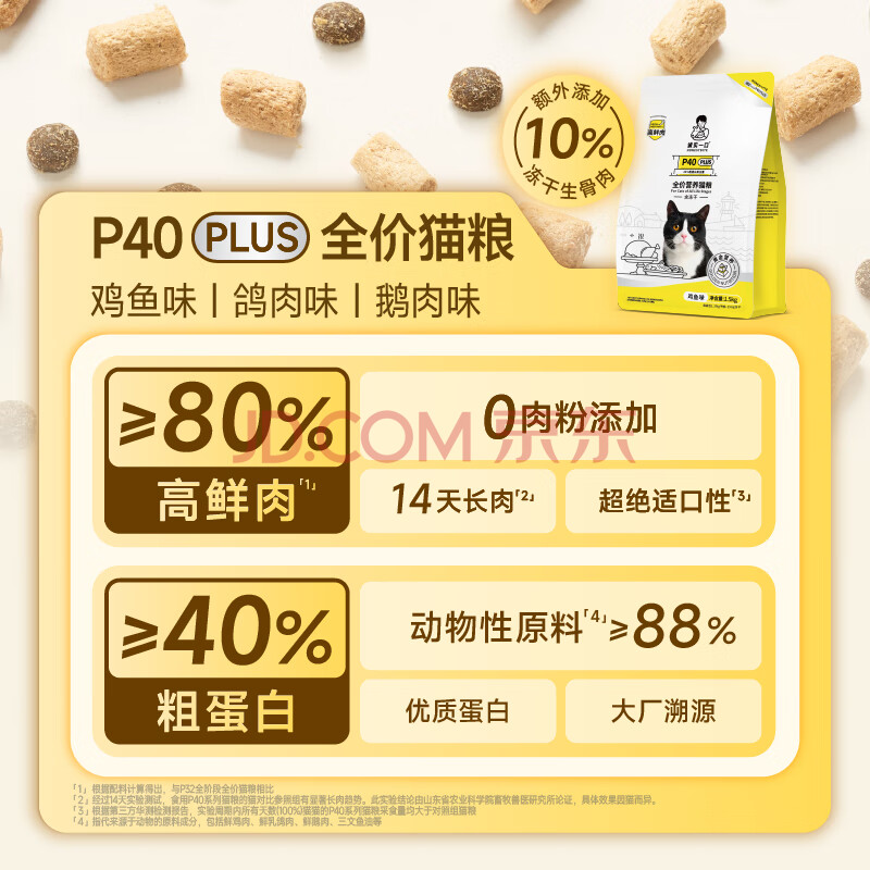 商品相册:诚实一口P40 PLUS冻干猫粮成猫幼猫80%鲜肉长肉养胃鸡鱼1.5kg第