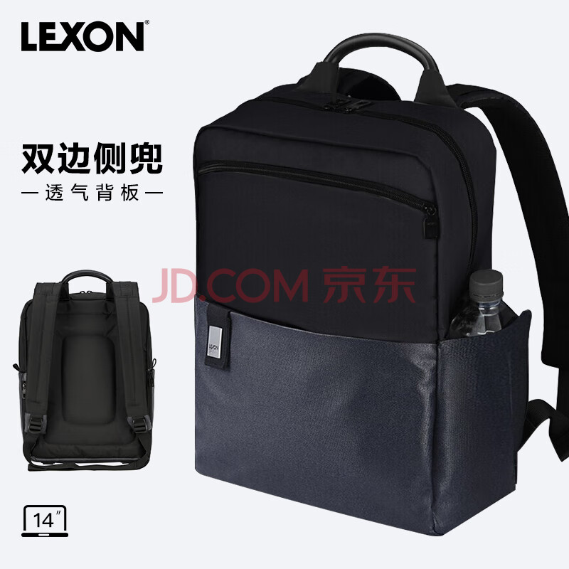 商品相册:乐上(LEXON)双肩包男商务14英寸笔记本电脑包休闲书包拼接情侣款黑/皮革蓝第