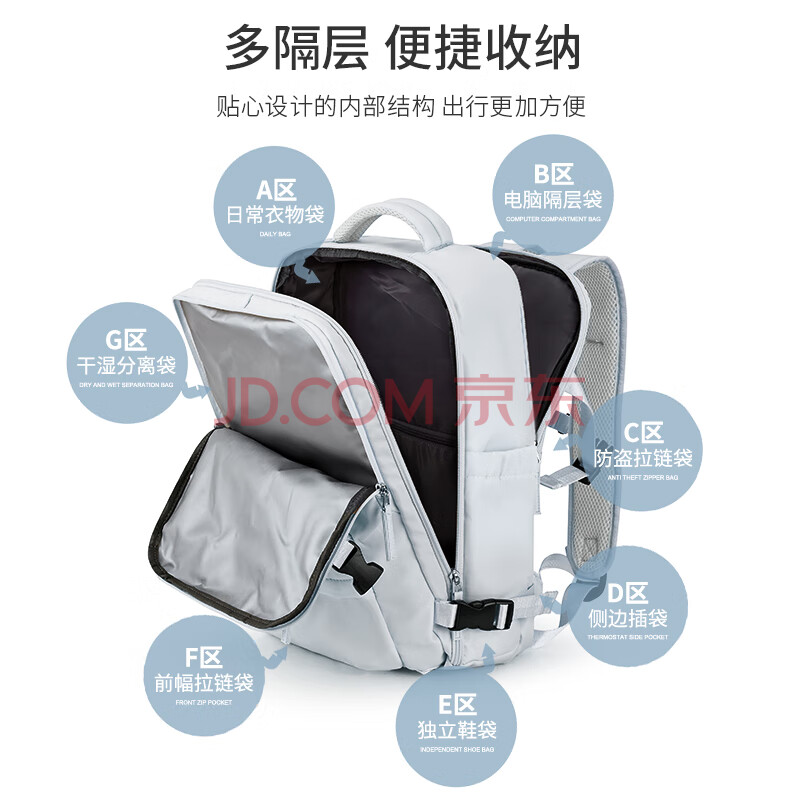 商品相册:Landcase背包旅行包女大容量双肩包男短途旅游包多功能电脑包5162浅蓝小号第
