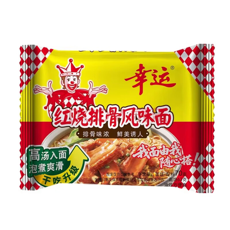 商品相册:幸运 方便面泡面干脆面红烧排骨面70克*30袋整箱装 年货方便面第