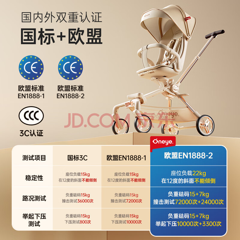商品相册:丸丫T6-2遛娃神器高景观婴儿推车可坐可躺轻便折叠可换向香槟金PLUS第