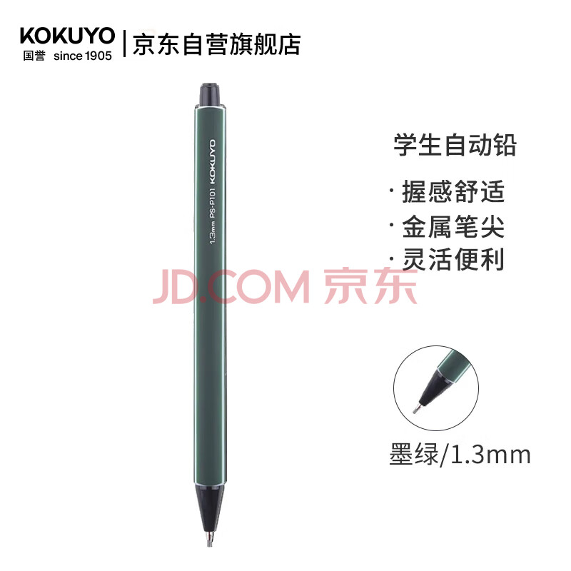 商品相册:国誉(KOKUYO)进口1.3mm自动铅笔学生考试活动铅笔不易折断金属笔尖 墨绿色1支 PS-P101DG-1P第