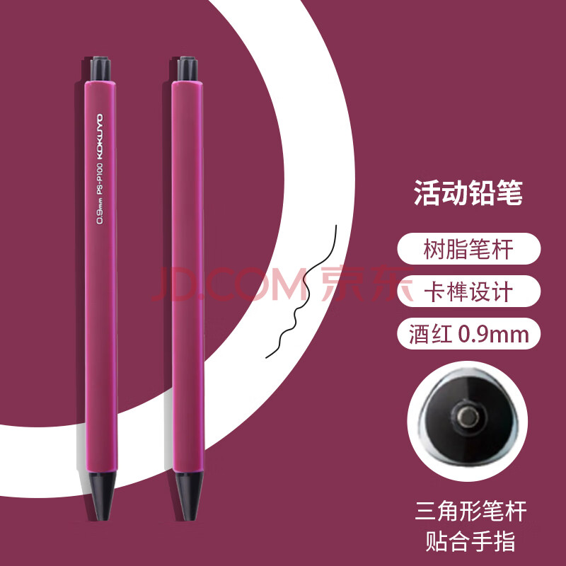 商品相册:国誉(KOKUYO)进口0.9mm自动铅笔学生考试活动铅笔不易折断金属笔尖 酒红色1支 PS-P100DR-1P第