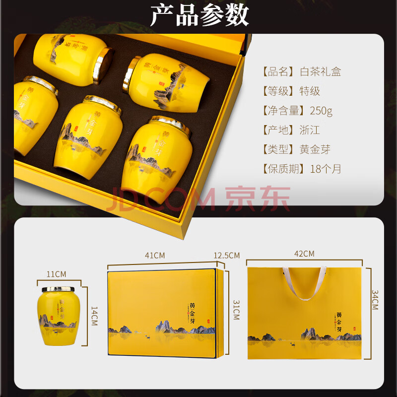 商品相册:唐朴绿茶安吉黄金芽白茶明前特级250g 新茶叶礼盒春茶年货高端送礼品第