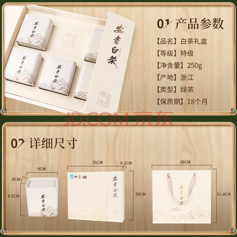 商品相册:唐朴绿茶安吉白茶明前特级250g2026新茶叶礼盒观山春茶年货高端送礼品第