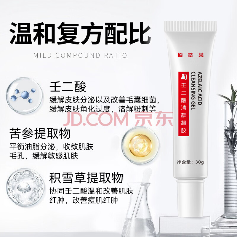 商品相册:佰萃莱壬二酸凝胶清颜15%疮可搭黑头粉刺20毛孔痘膏30g 3支第