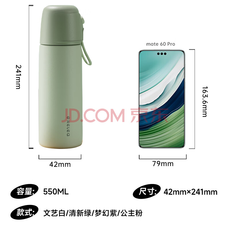 商品相册:物生物(RELEA)学生保温杯男女士儿童大容量水杯316L不锈钢便携泡茶杯子生日礼物第