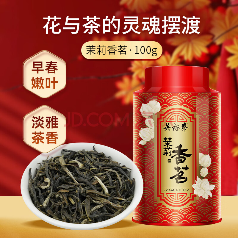 商品相册:吴裕泰茉莉花茶 茉莉香茗 浓香型特种100g 七窨芽叶醇香 罐装第
