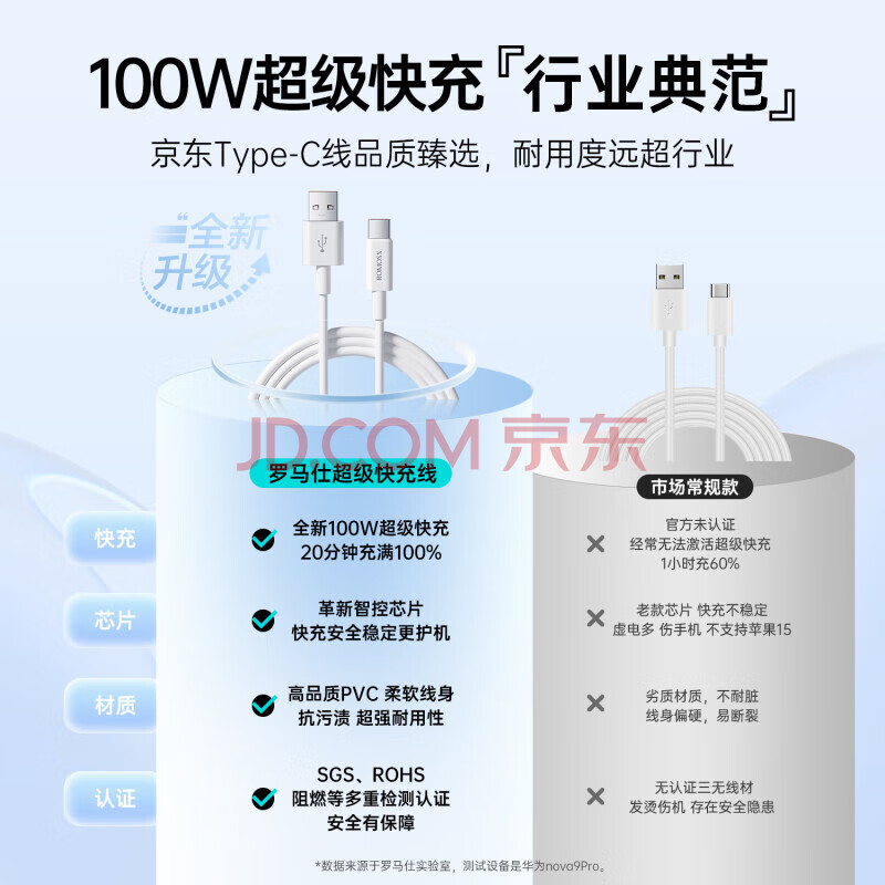 商品相册:罗马仕Type-C数据线6A超级快充100W/88W/66W华为荣耀USB充电线适用小米安卓手机平板Pura70/Mate70/60/50第