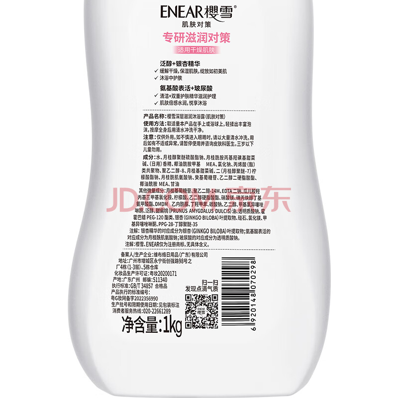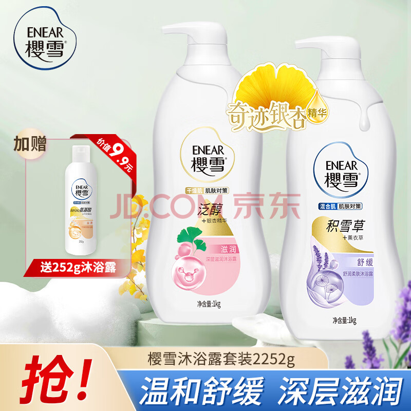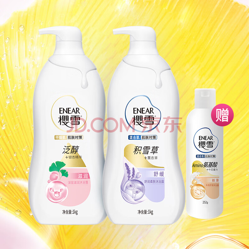 商品相册:樱雪(ENEAR)沐浴露组合套装 深层滋润1kg+舒润柔肤1kg 加送252g 中性沐浴乳第