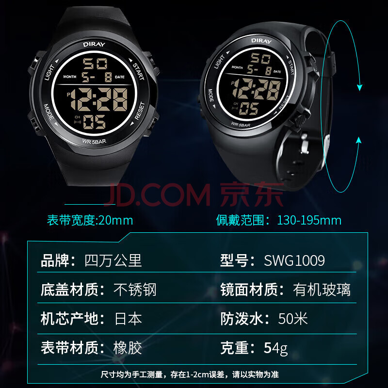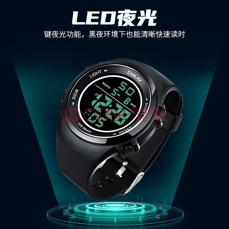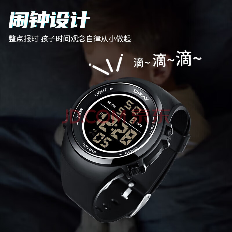 商品相册:四万公里儿童电子手表学生手表男孩小学生初高中生运动手表防水夜光闹钟第