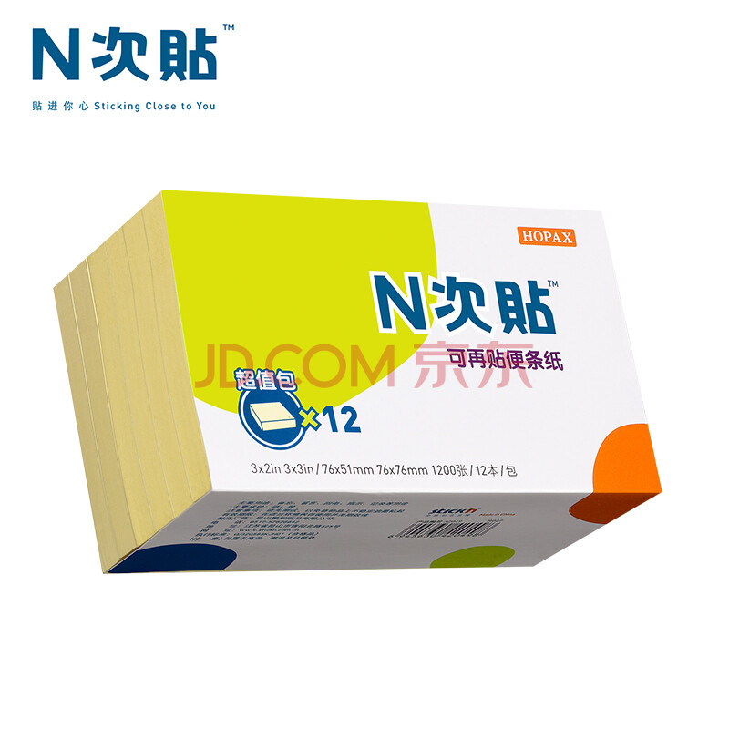 商品相册:N次贴(STICKN)12本装便利贴报事贴/便条纸/便签纸/便签本76*51+76*76mm组合 黄色32049第