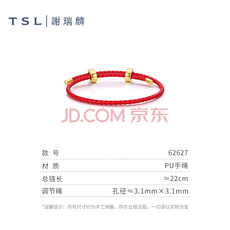 商品相册:谢瑞麟(TSL)手绳可穿珠转运珠手绳编织绳情侣款多色可选62627-62628 62627-红色 第