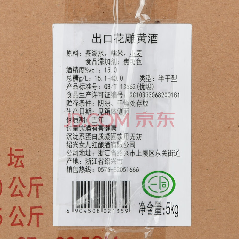 商品相册:女兒红出口花雕 半干型 绍兴黄酒 5L 大坛装 源头直发 包邮第