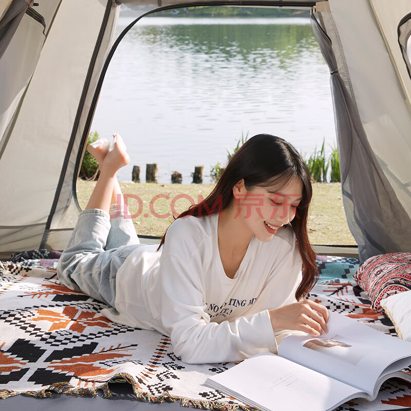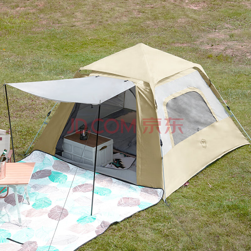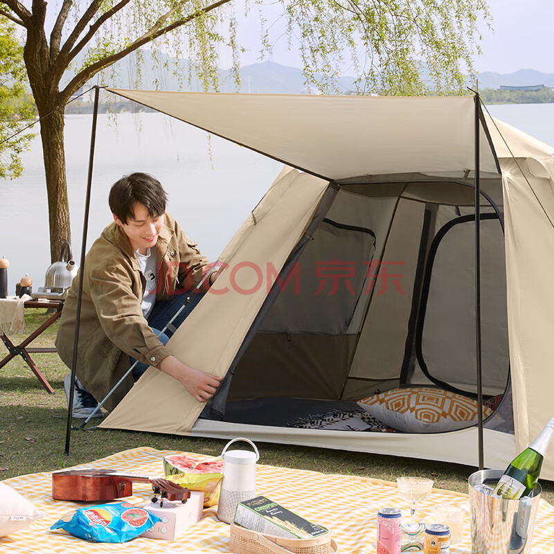 商品相册:京东京造 公园前厅帐篷4.4㎡涂银防晒加厚牛津布户外露营装备3-4人流沙金第