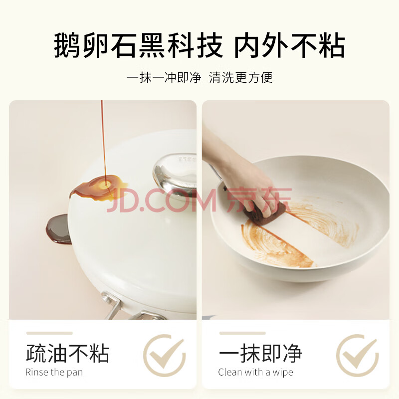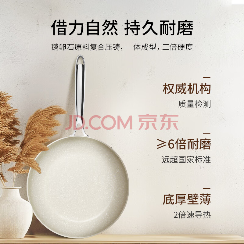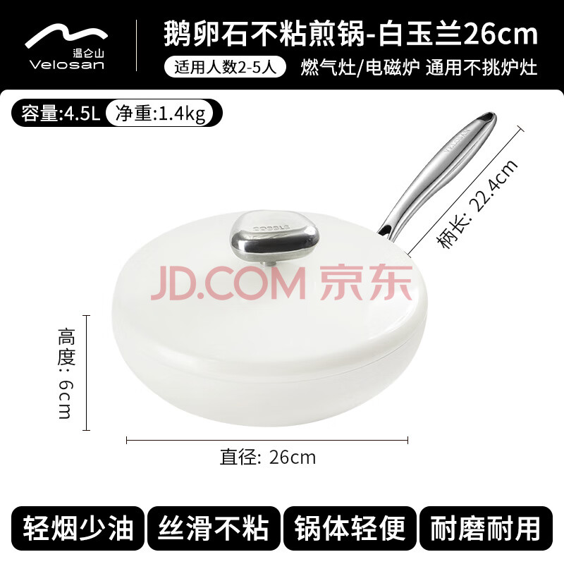 商品相册:温仑山鹅卵石平底锅不粘锅煎锅麦饭石煎蛋锅燃气灶电磁炉专用白玉兰26cm第