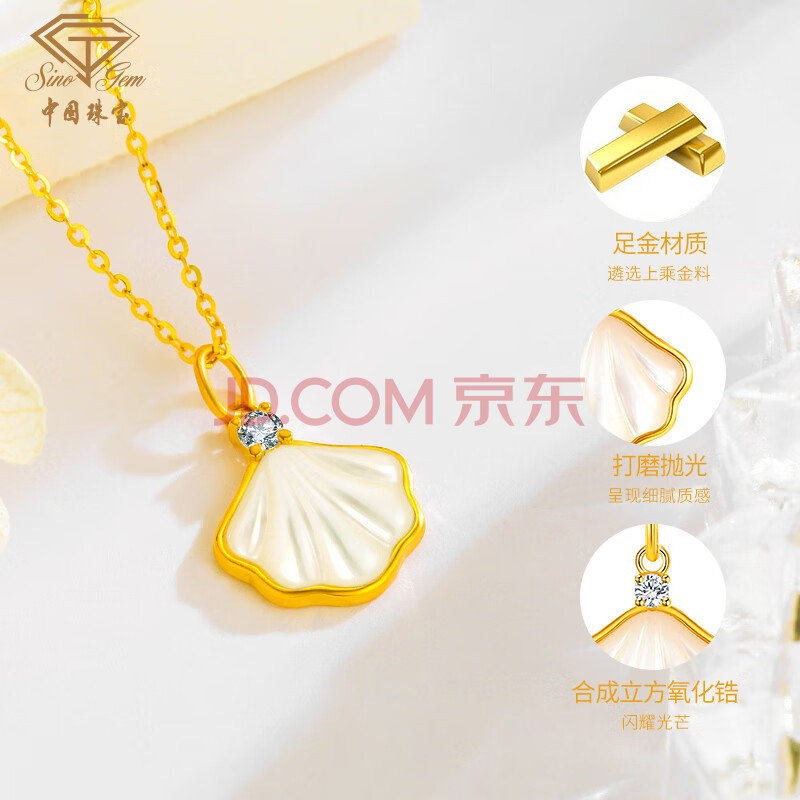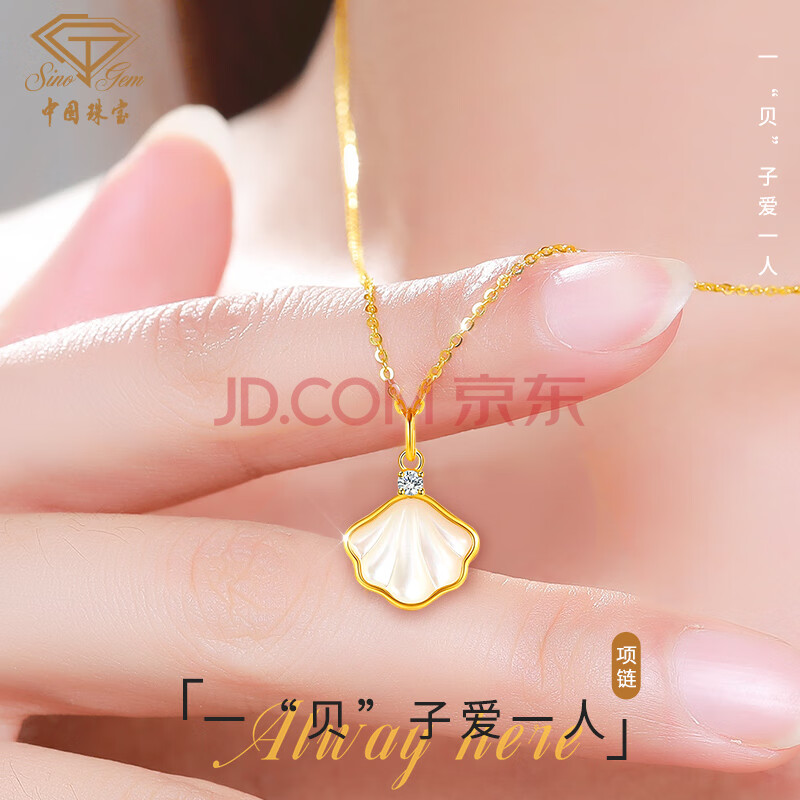 商品相册:中国珠宝黄金项链女足金999一贝子锁骨链结婚三金生日礼物送女友第1张/共7