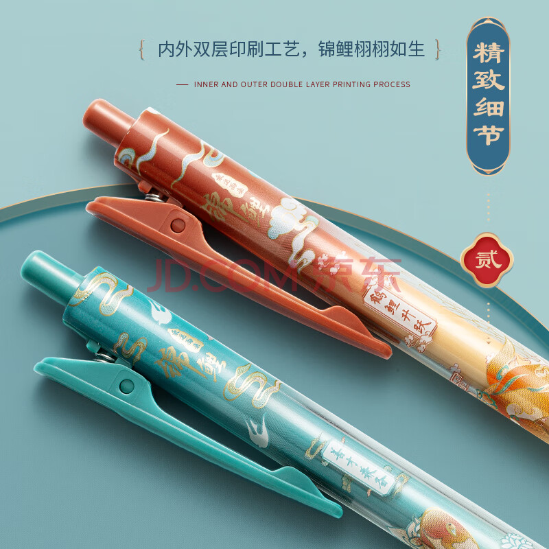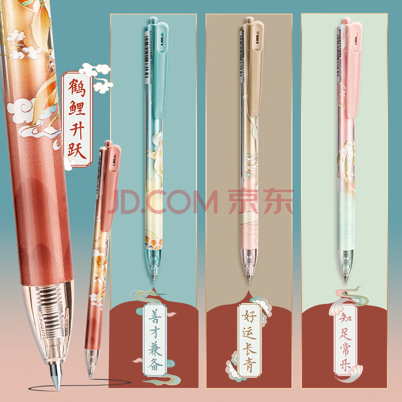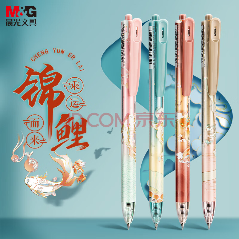 商品相册:晨光(M&G)(M&G)文具0.5mm黑色速干中性笔按动子弹头签字笔锦鲤系列水笔4支/盒AGPJ5504备考第