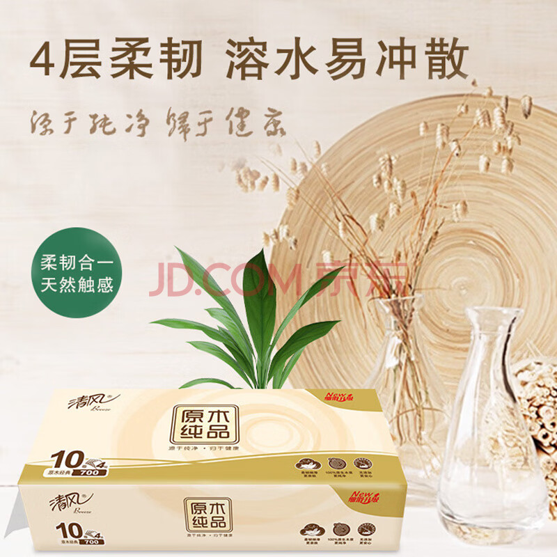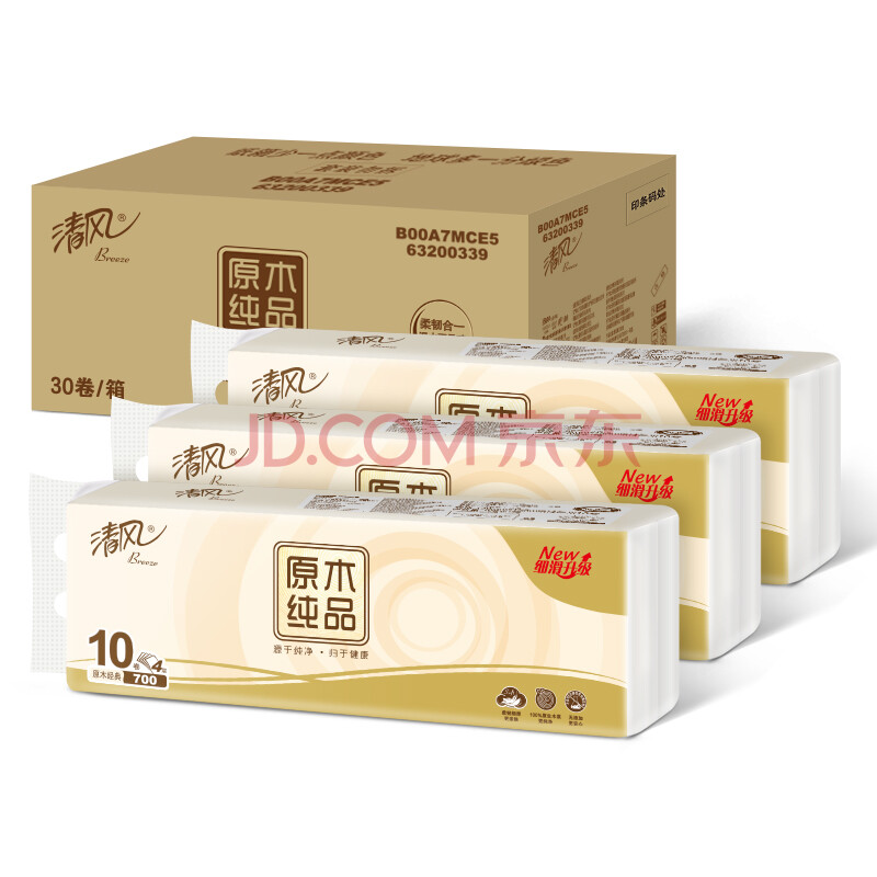 商品相册:清风无芯卷纸原木纯品4层70克*30卷卫生纸纸巾m码 箱装厕纸第