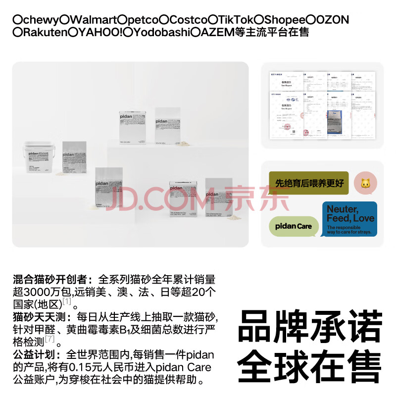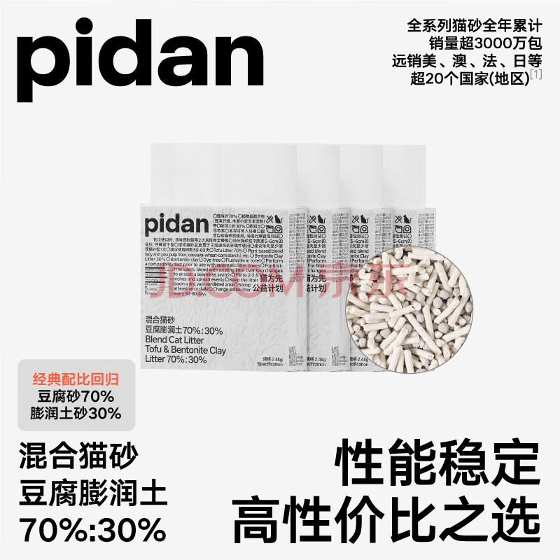 商品相册:pidan混合猫砂 豆腐膨润土70%:30%混合2.4kg*4包自营猫砂第