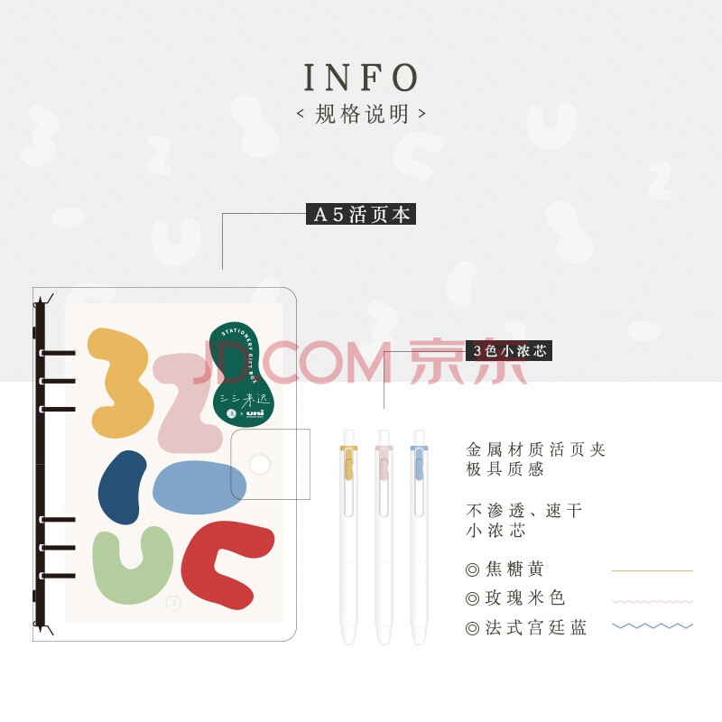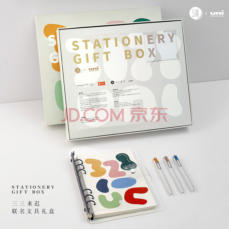 商品相册:三年二班 uni三菱联名款笔记本子文具礼盒 小浓芯中性笔a5简约活页本手账本套装儿童礼物奖品圣诞节礼物第