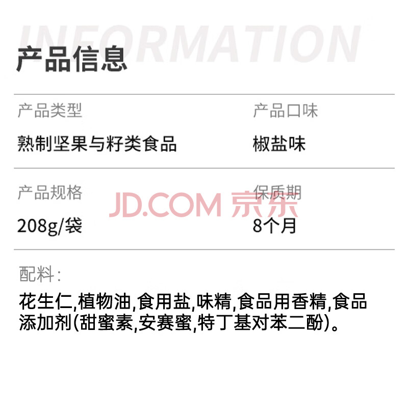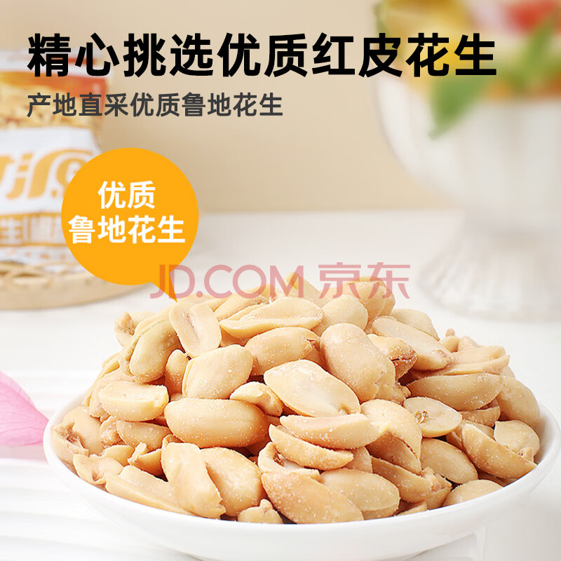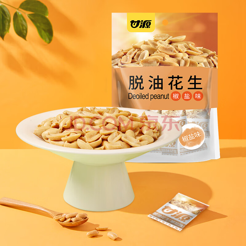 商品相册:甘源牌脱油花生椒盐味下酒脱皮花生米坚果炒货休闲零食小吃208g第