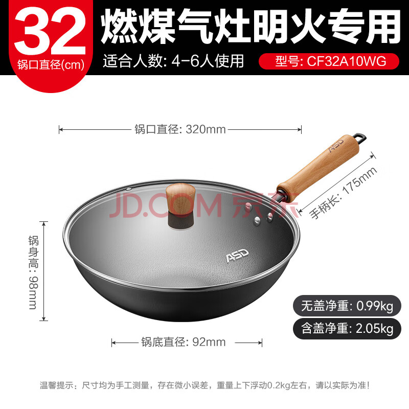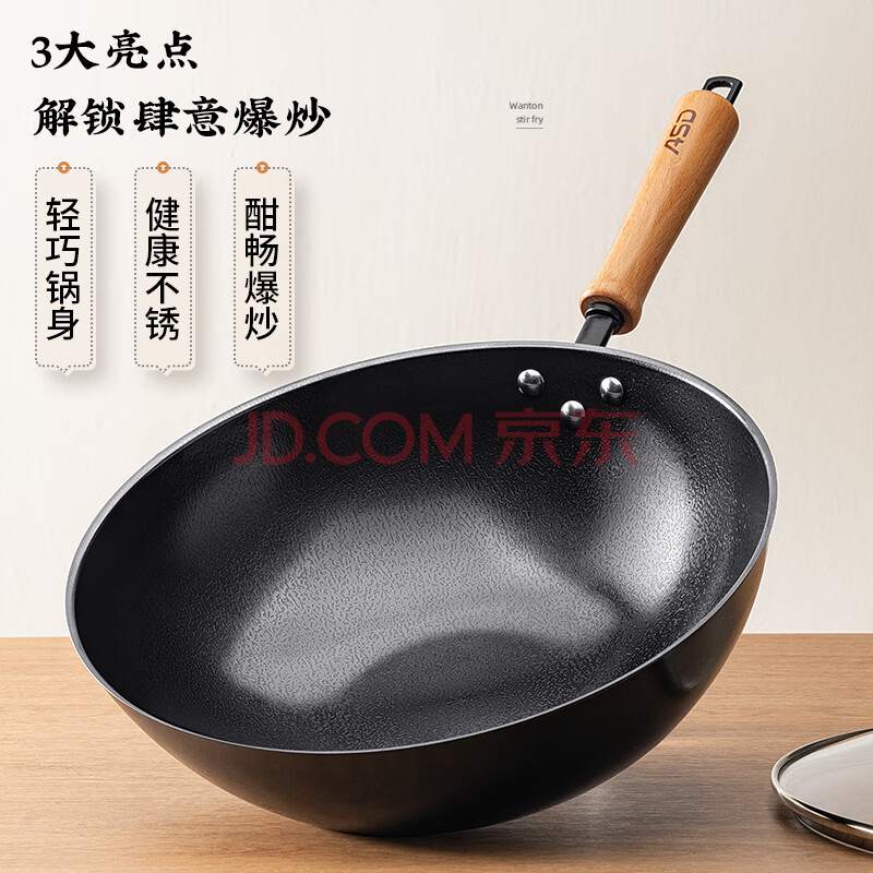 商品相册:爱仕达(ASD)炒锅无涂层锈不了轻量爆炒精铁锅炒菜锅32cm燃气专用CF32A10WG第