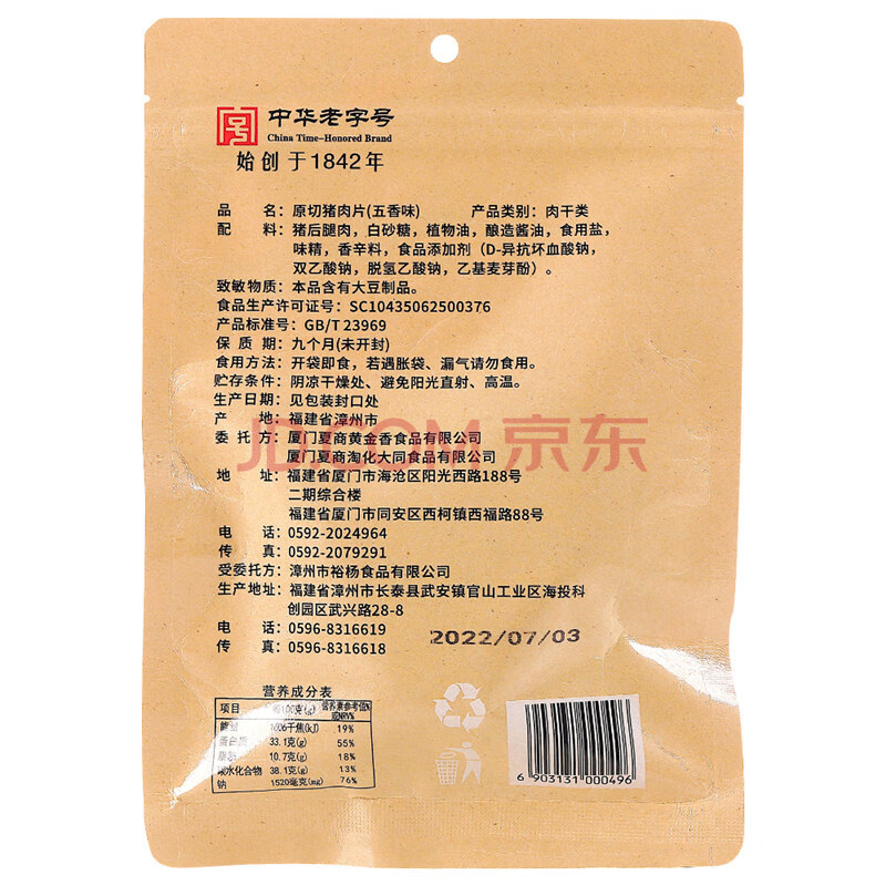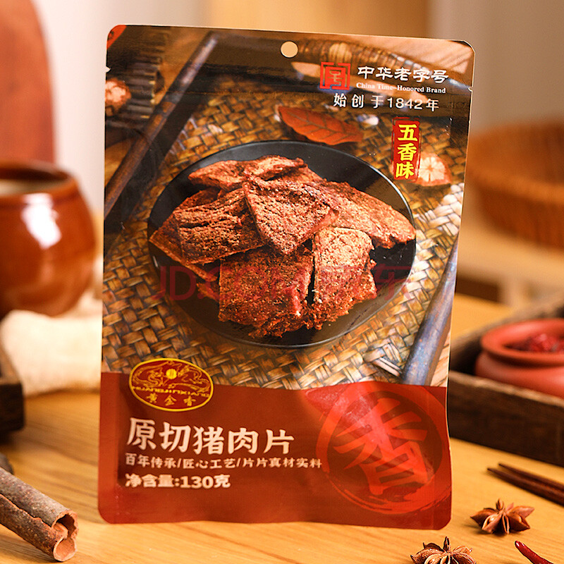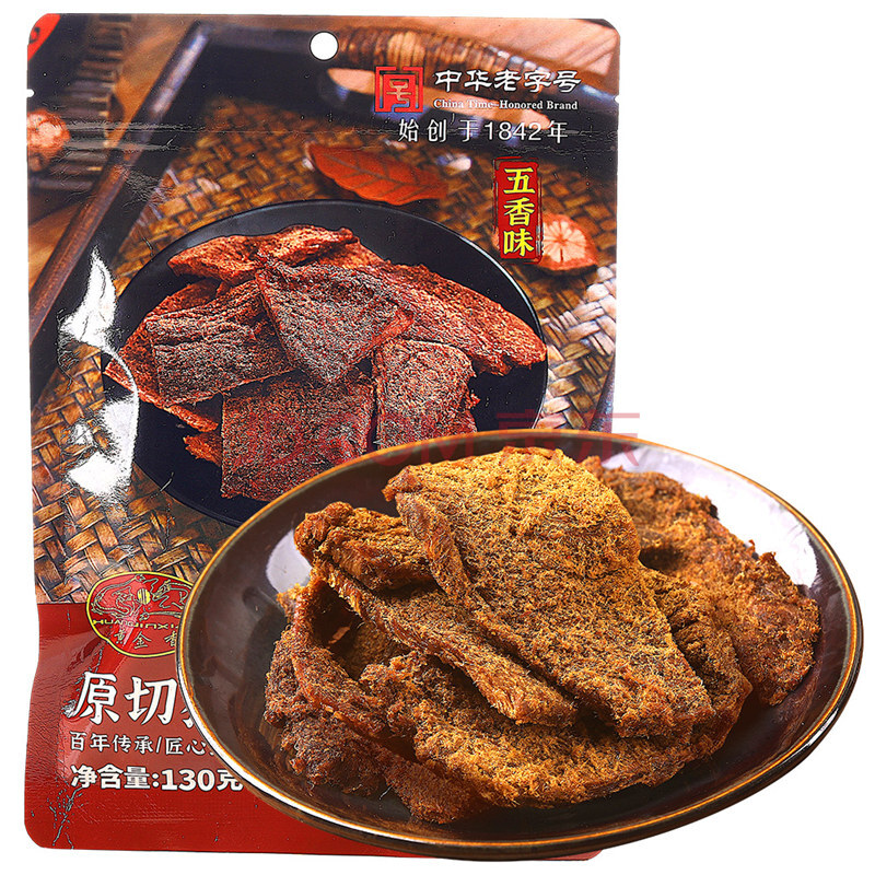 商品相册:黄金香中华老字号 原切猪肉干130g 厦门特产手撕肉干肉脯休闲肉类零食第