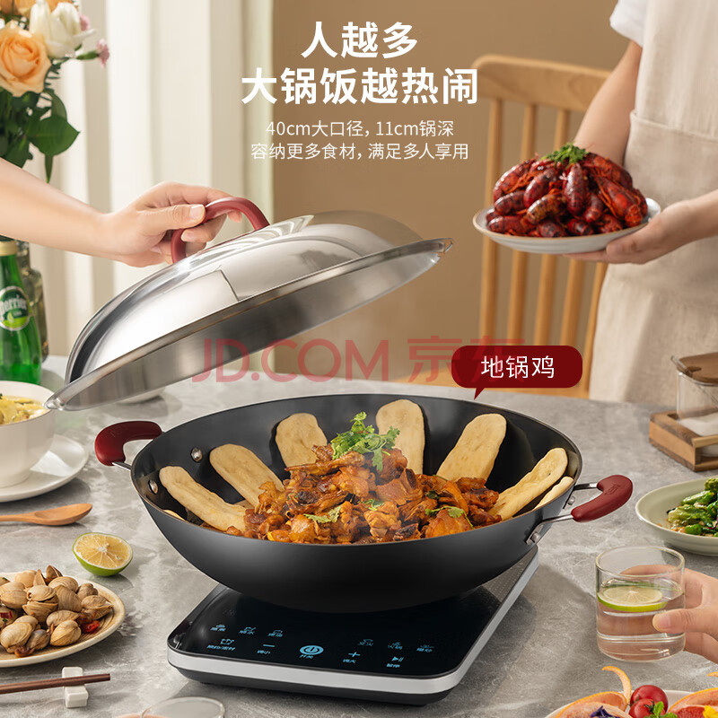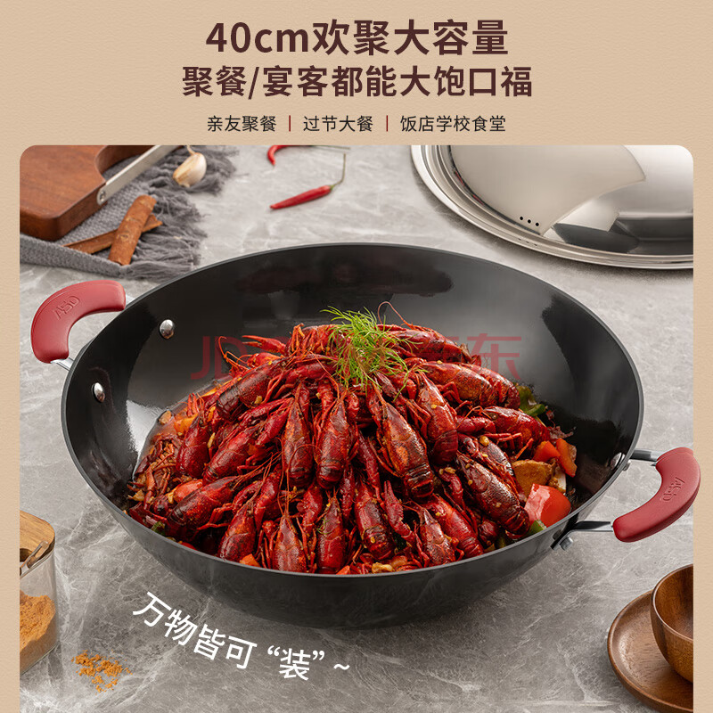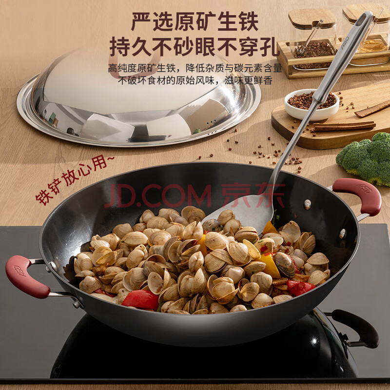 商品相册:爱仕达(ASD)炒锅铸铁锅防锈无涂层大铁锅炒菜锅40cm燃气电磁炉通用CF40E1WG第