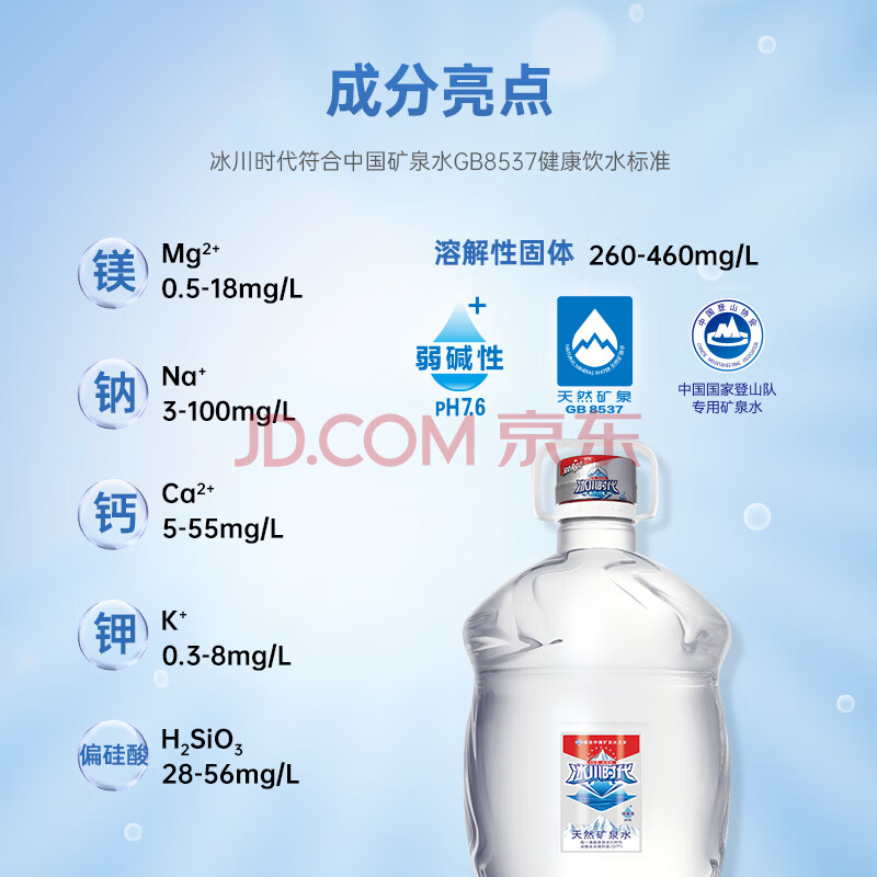 商品相册:冰川时代天然矿泉水弱碱性家庭大桶装水饮用水4.5L*4桶整箱泡茶水京东自营第