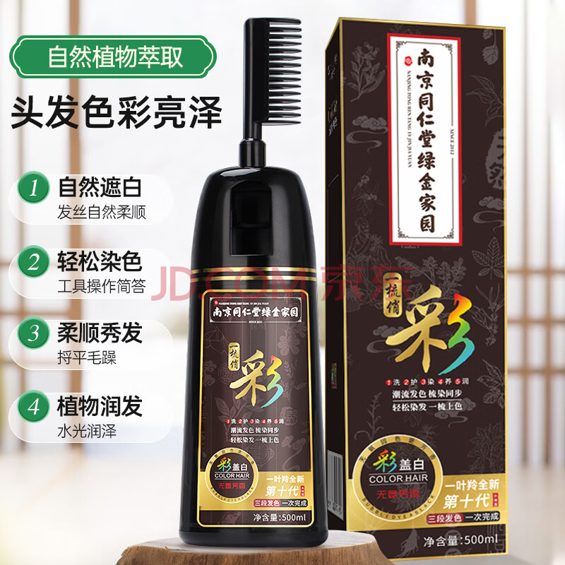 商品相册:一叶羚一梳黑南京同仁堂染发梳染发剂膏植物自然黑发焗油炫彩纯黑色第