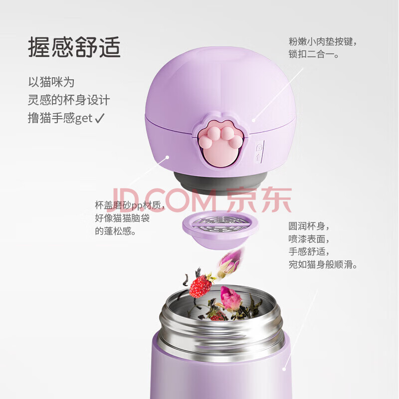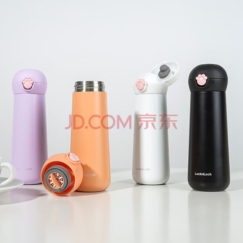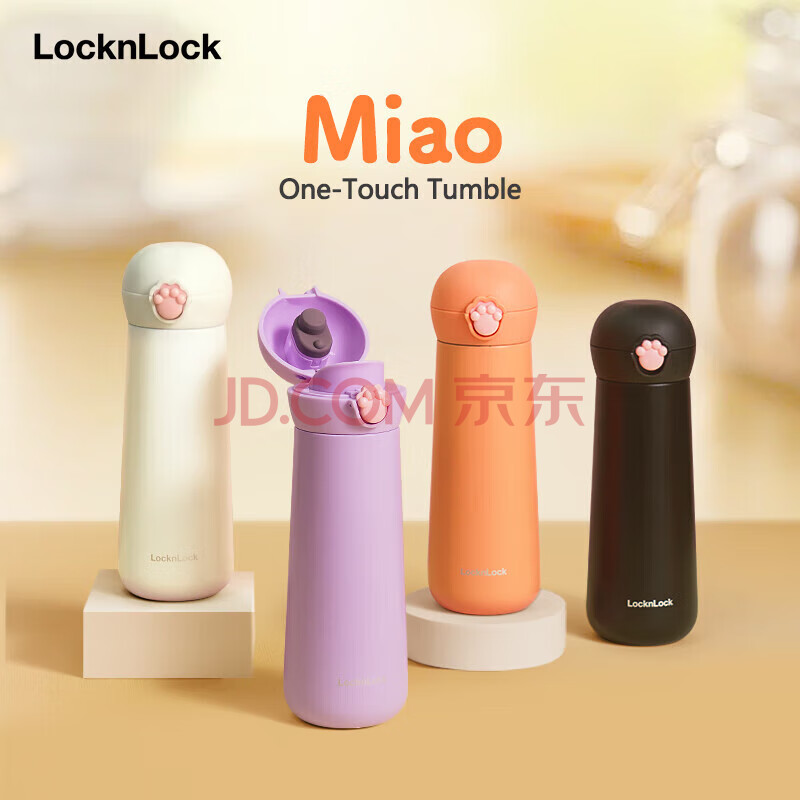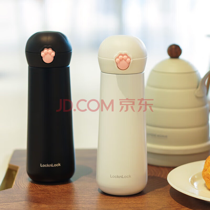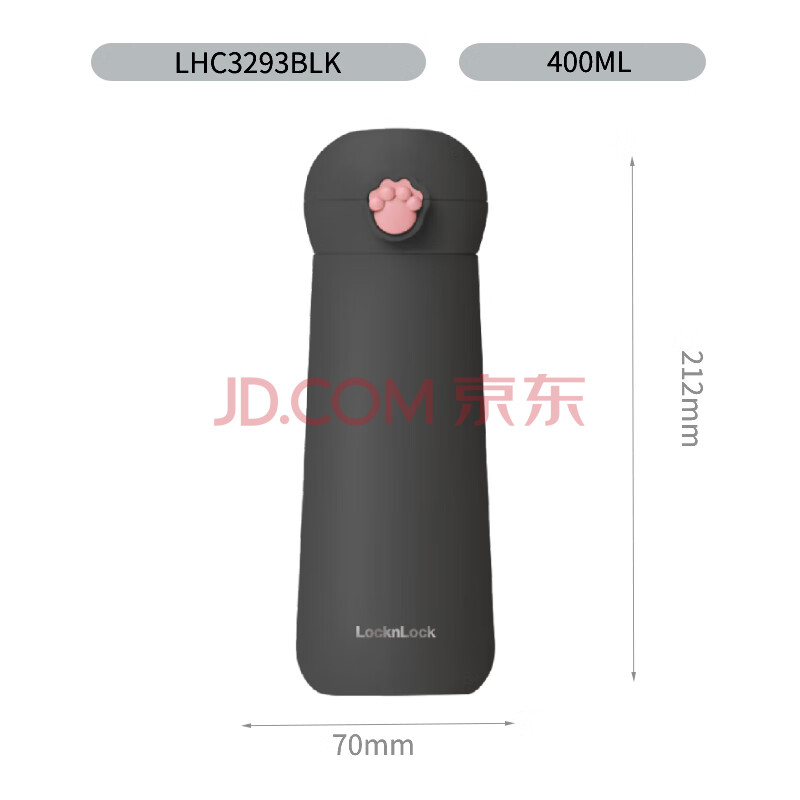 商品相册:乐扣乐扣(LOCK&LOCK)喵喵弹跳保温保冷杯 可爱便携不锈钢水杯子黑色400mL LHC3293BLK第