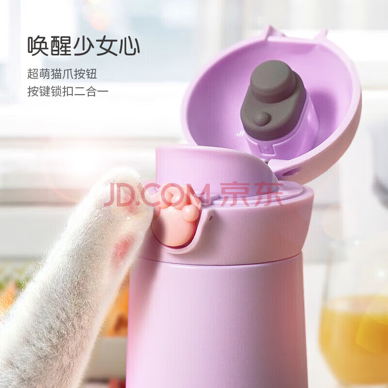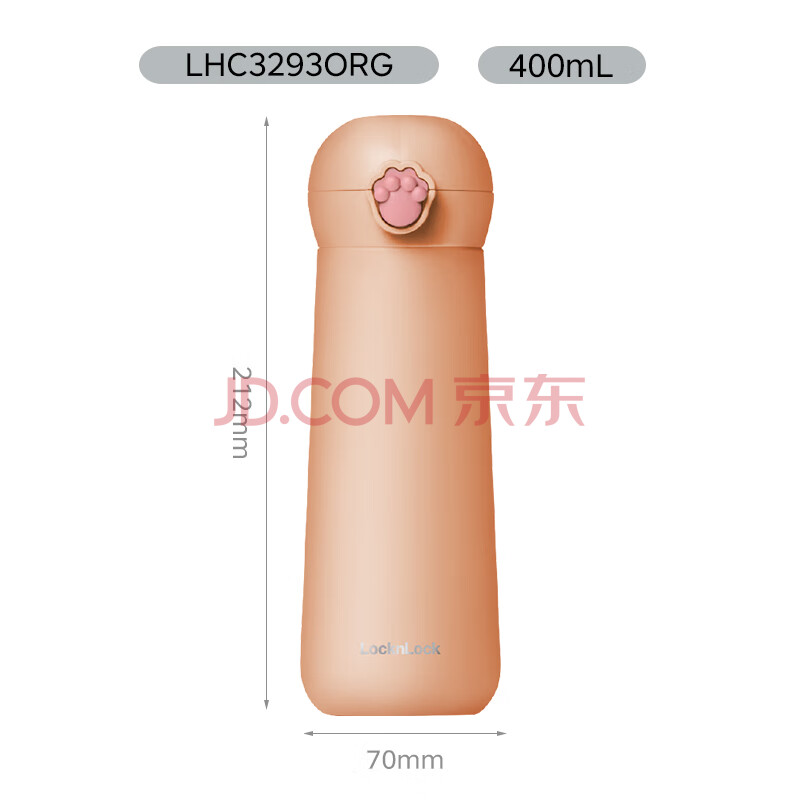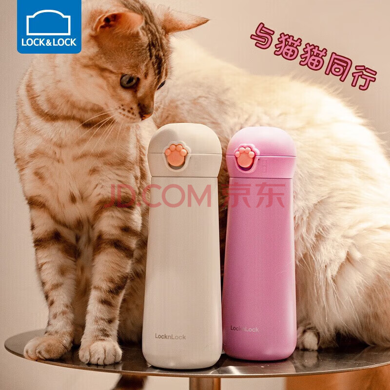 商品相册:乐扣乐扣(LOCK&LOCK)喵喵弹跳保温保冷杯 可爱便携不锈钢水杯子橘色400mL LHC3293ORG第