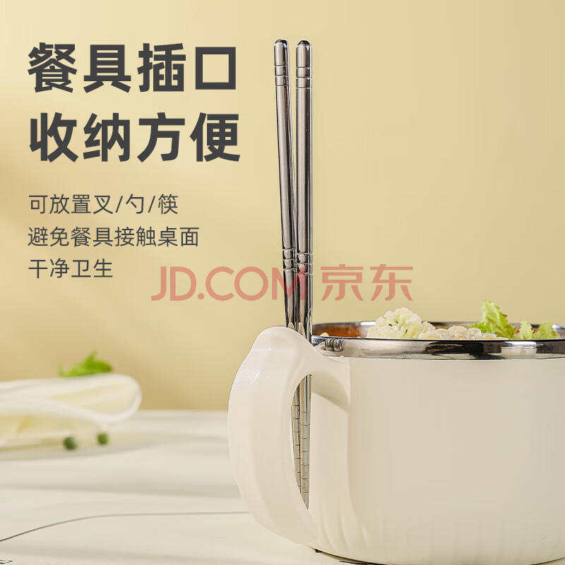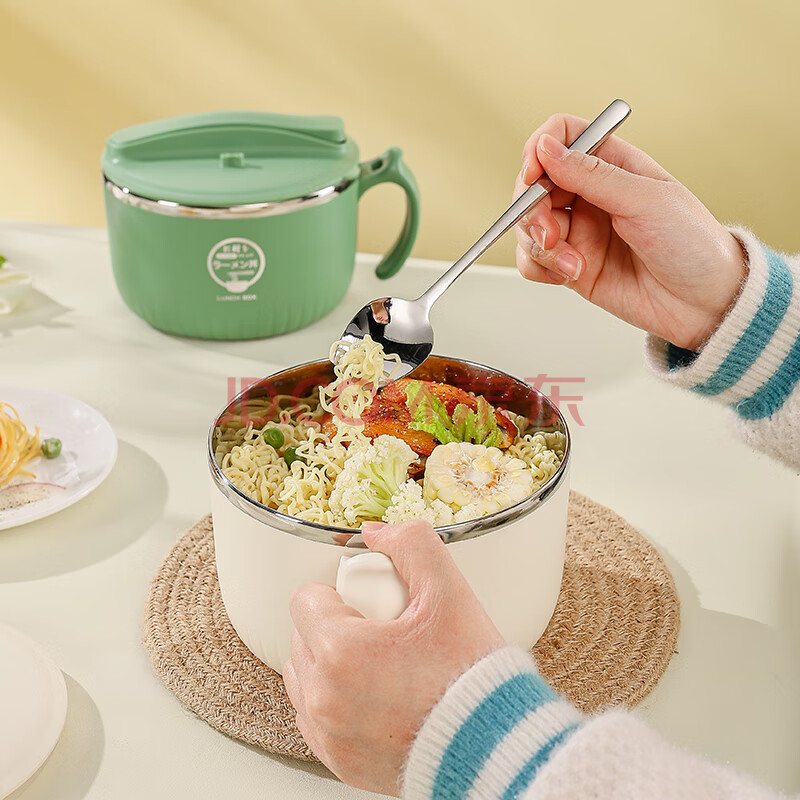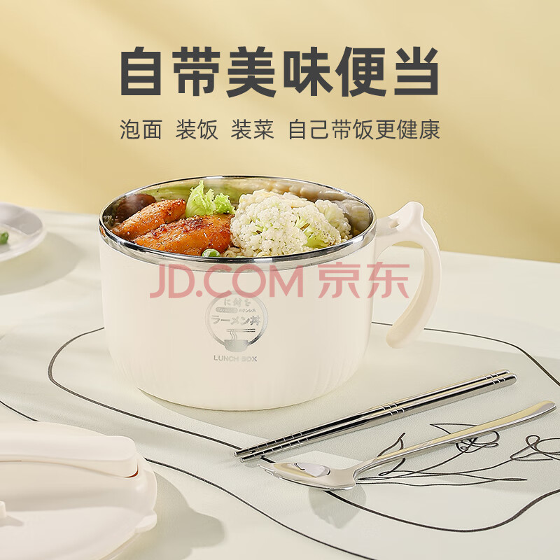 商品相册:广意304不锈钢泡面碗配勺筷防烫学生饭盒上班族快餐杯米色1.4LGY8540第