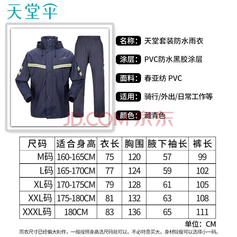 商品相册:天堂 户外雨衣雨披单人分体套装春亚纺双层电动电瓶摩托车 藏青3XL码第