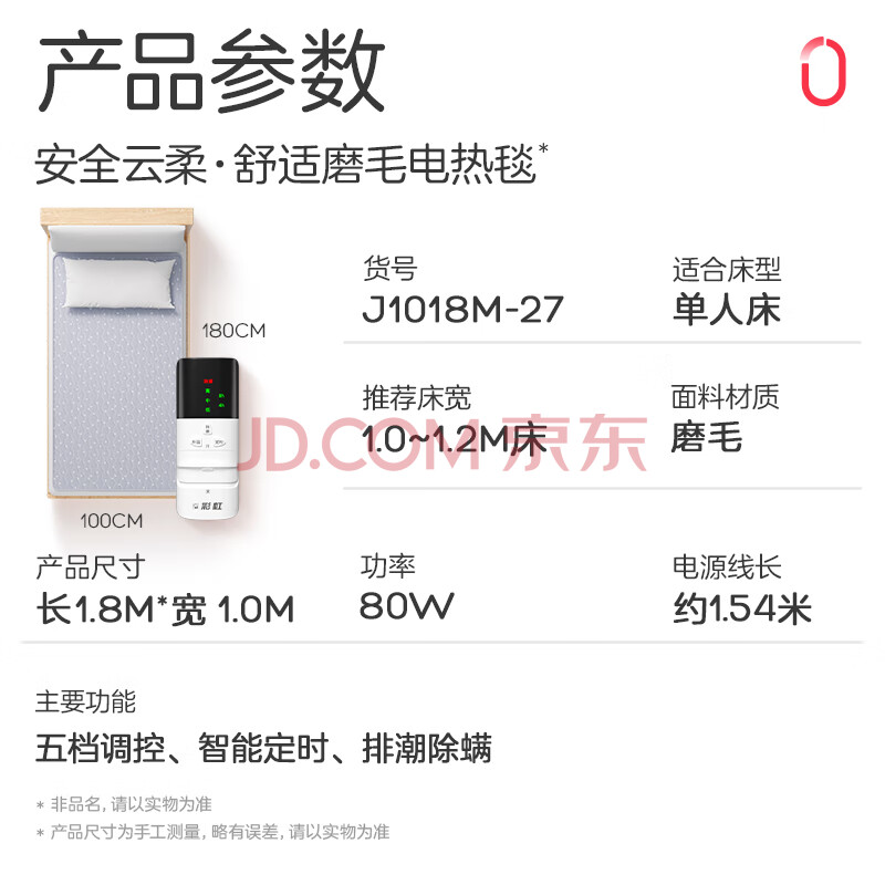 商品相册:彩虹【高温断电】单人智能定时除螨磨毛电热毯电褥子1.8*1.0米第