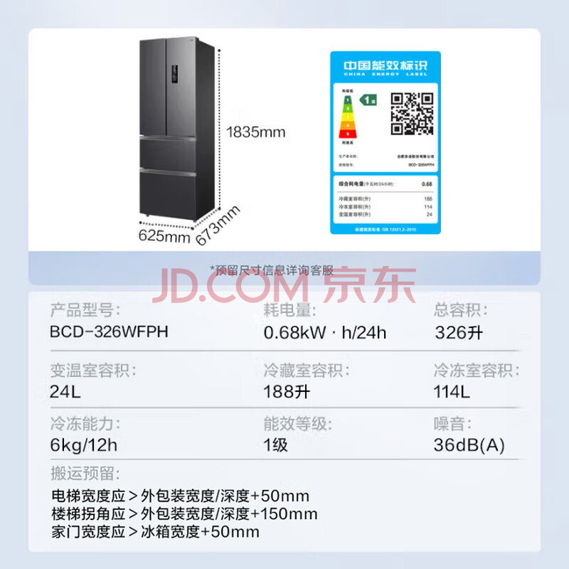 商品相册:华凌美的出品326L法式多门冰箱一级能效双变频风冷无霜家用电冰箱节能净味冰箱BCD-326WFPH第