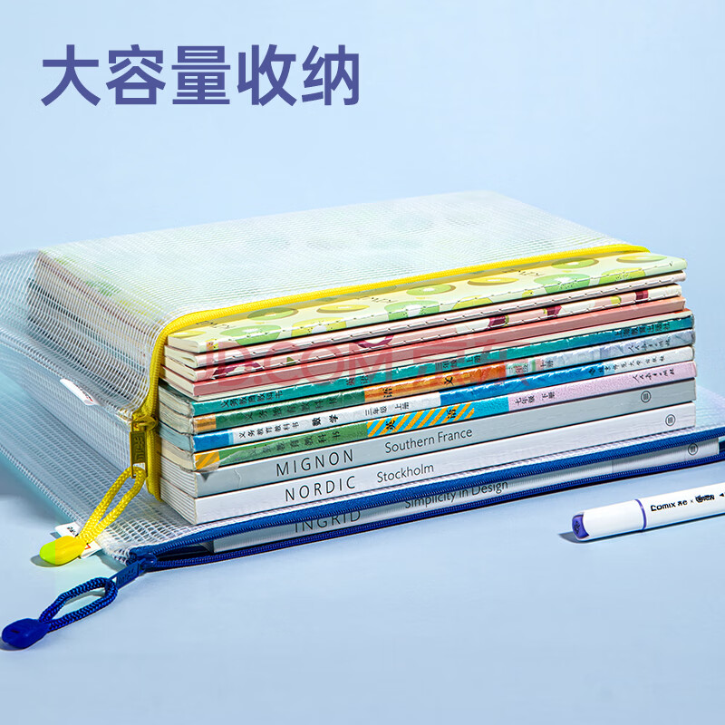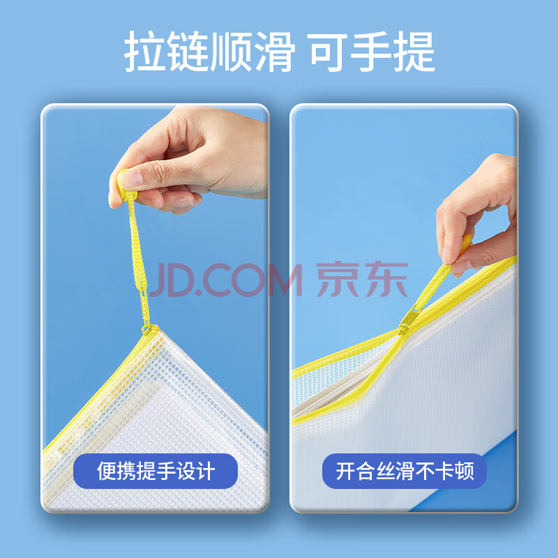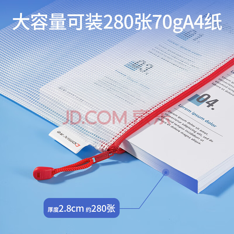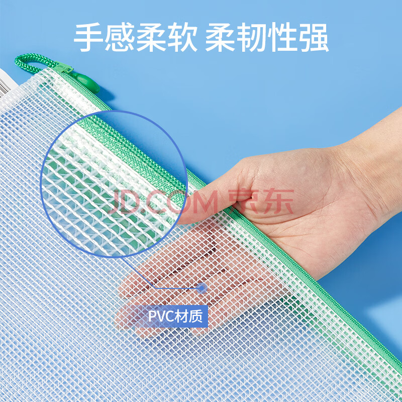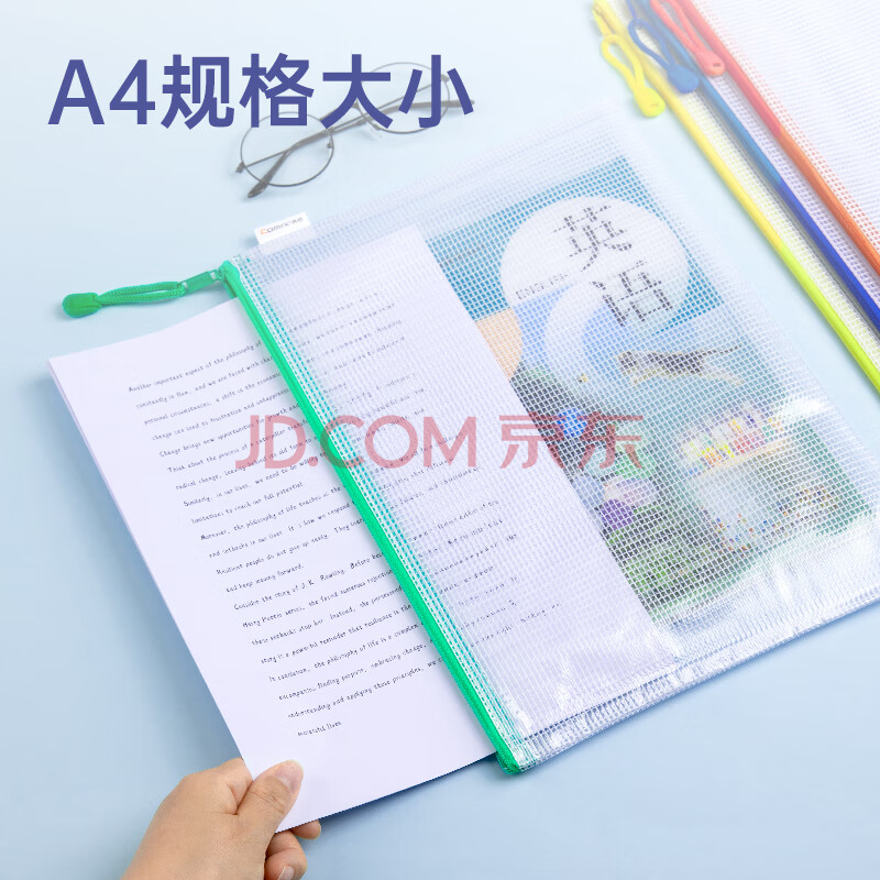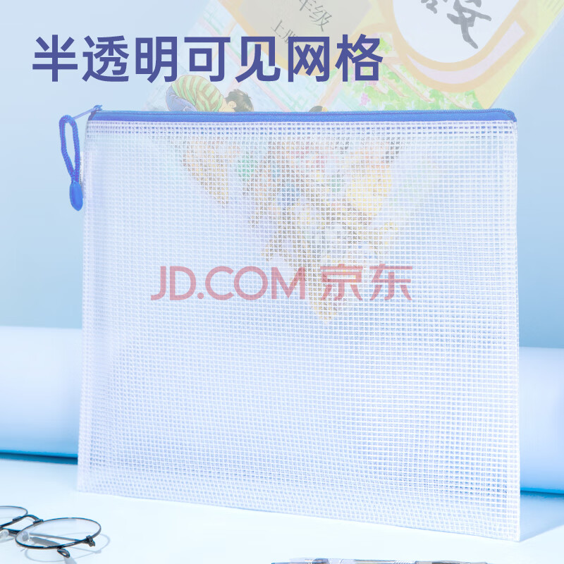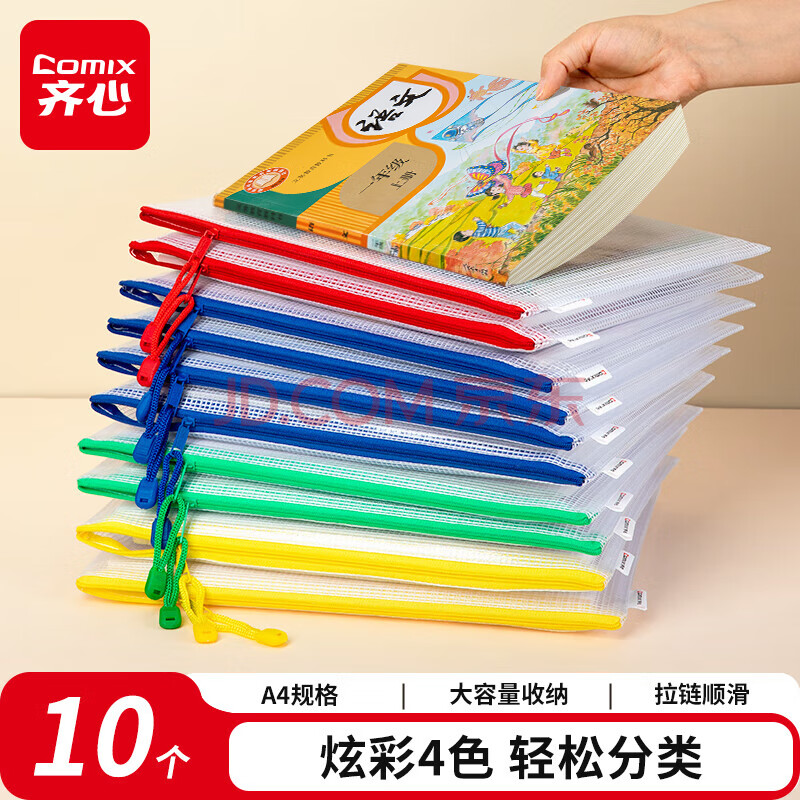 商品相册:齐心(COMIX)10只A4文件袋透明拉链袋小学生科目分类袋办公资料袋试卷票据收纳拉边袋网格塑料考试文具袋EA1054第