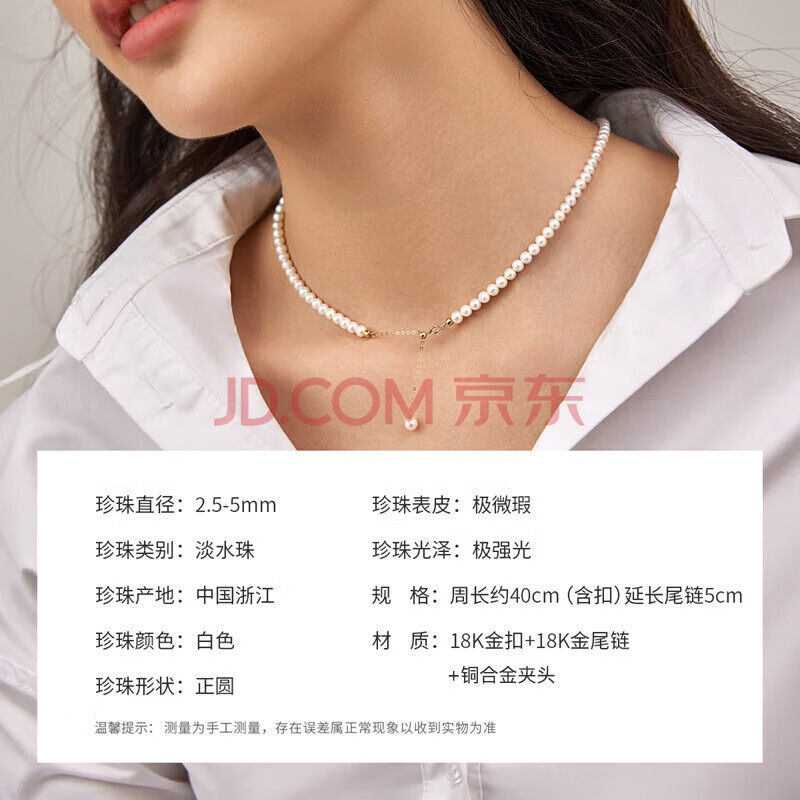 商品相册:珍珠皇后18K金正圆珍珠项链媲美akoya高品质2.5-3mm小米珠链送女友第