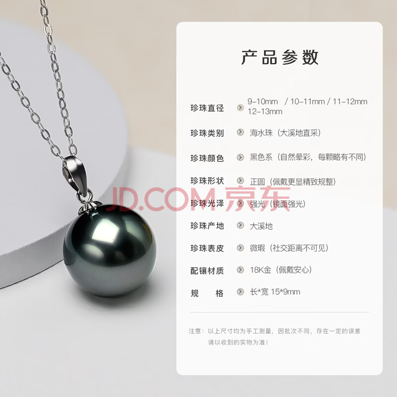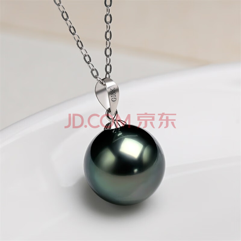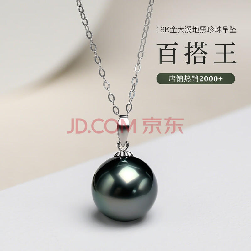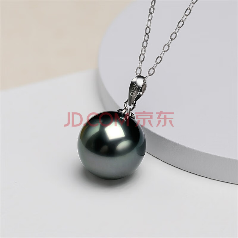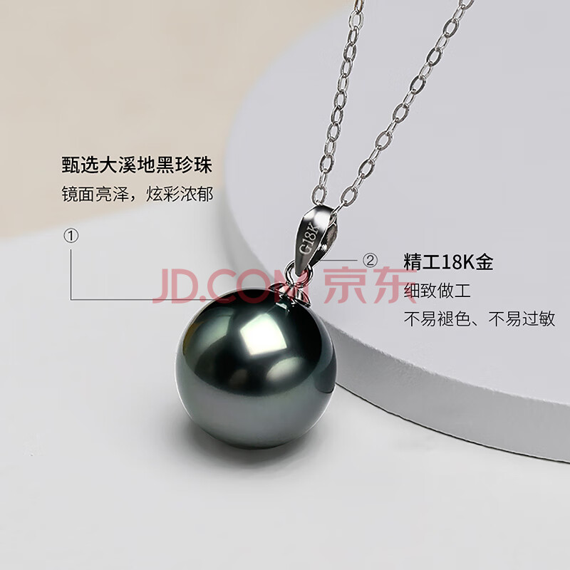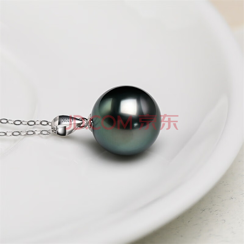商品相册:珍珠皇后18K金大溪地黑珍珠吊坠 正圆海水珍珠项链妈妈生日礼物送女朋友第
