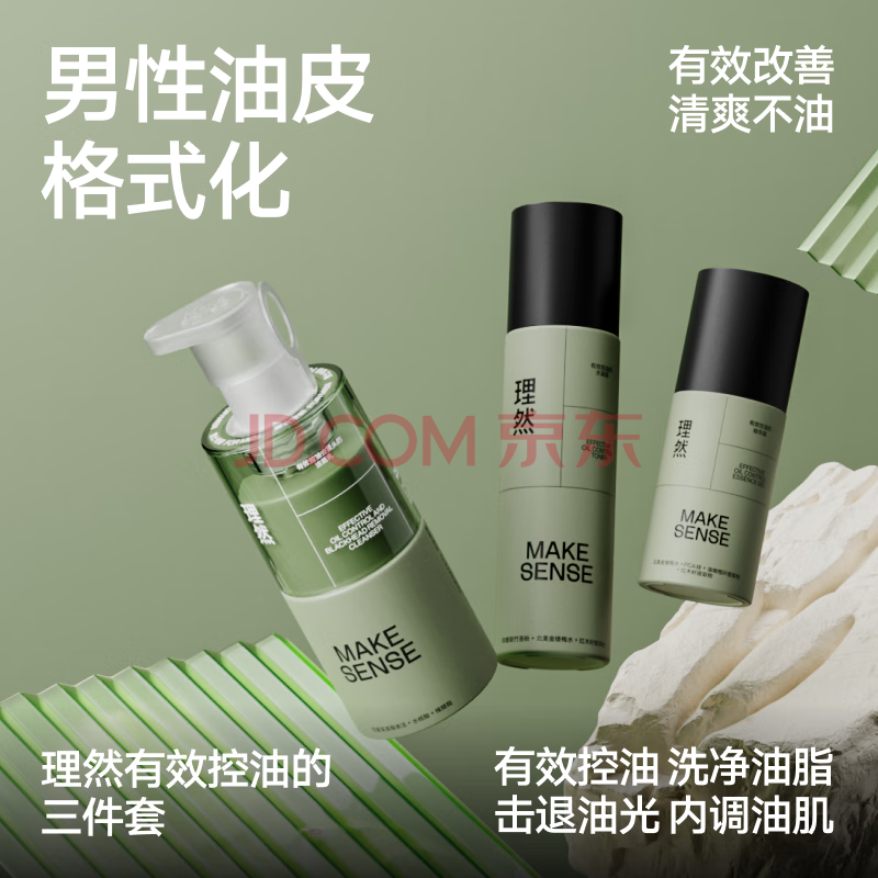 商品相册:理然男士控油补水保湿护肤套装油痘肌洗面奶凝露精华送礼送男友第