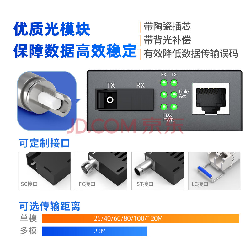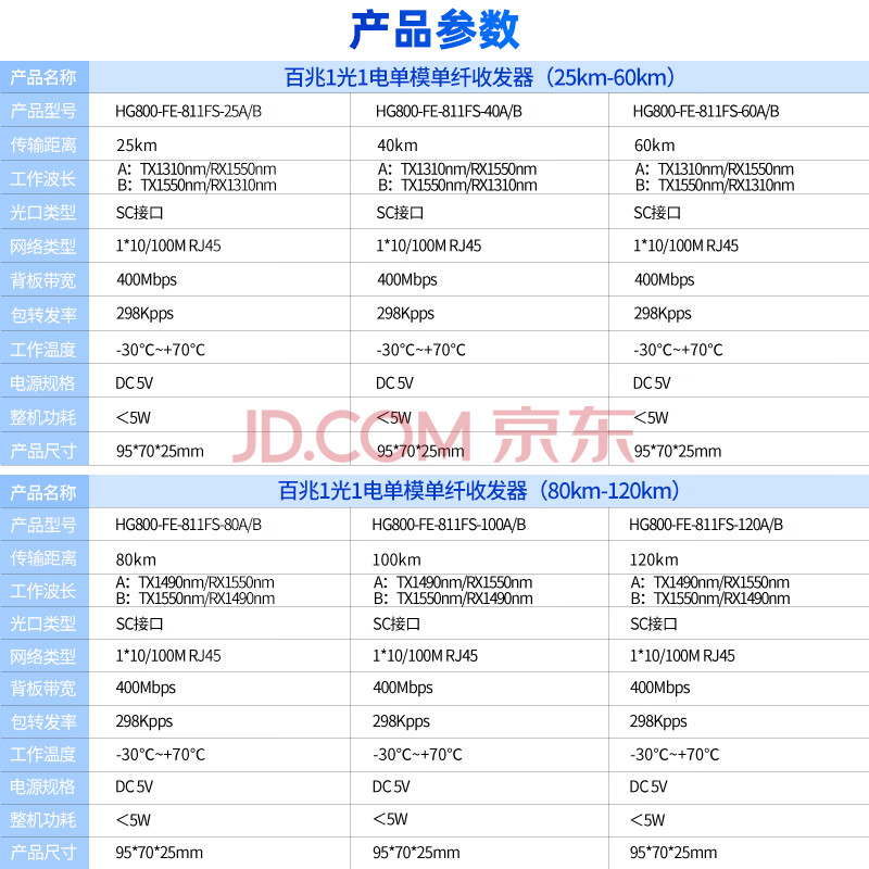 商品相册:慧谷 百兆光纤收发器单模单纤B端 光电转换器 电信级 SC接口 25km 一台价 HG800-FE-811FS-25B第