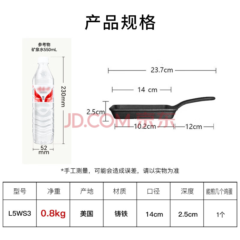 商品相册:LODGE【美国进口】14CM平底锅不易粘锅铸铁锅玉子烧锅方形煎锅L5WS3 第
