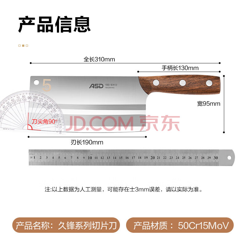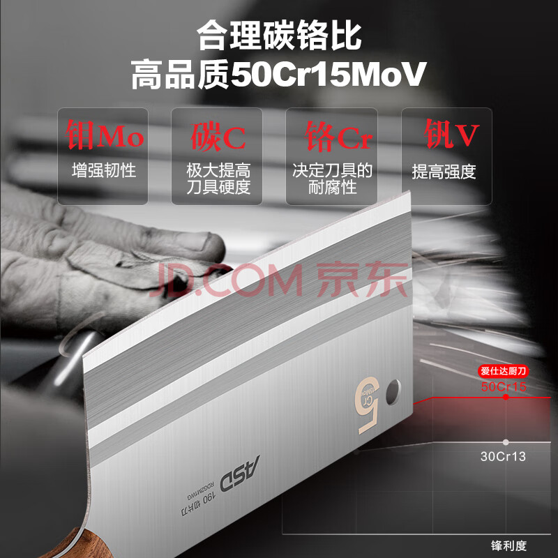 商品相册:爱仕达(ASD)菜刀厨房刀具50Cr15mov不锈钢斩切刀久锋系列切片刀RDG2M1WG第