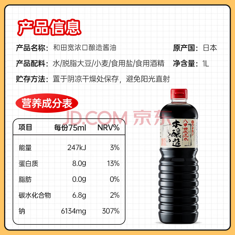 商品相册:久意本酿造八甲田伏流水和田宽浓口酱油【特级0脂肪】1L凉拌日本进口第