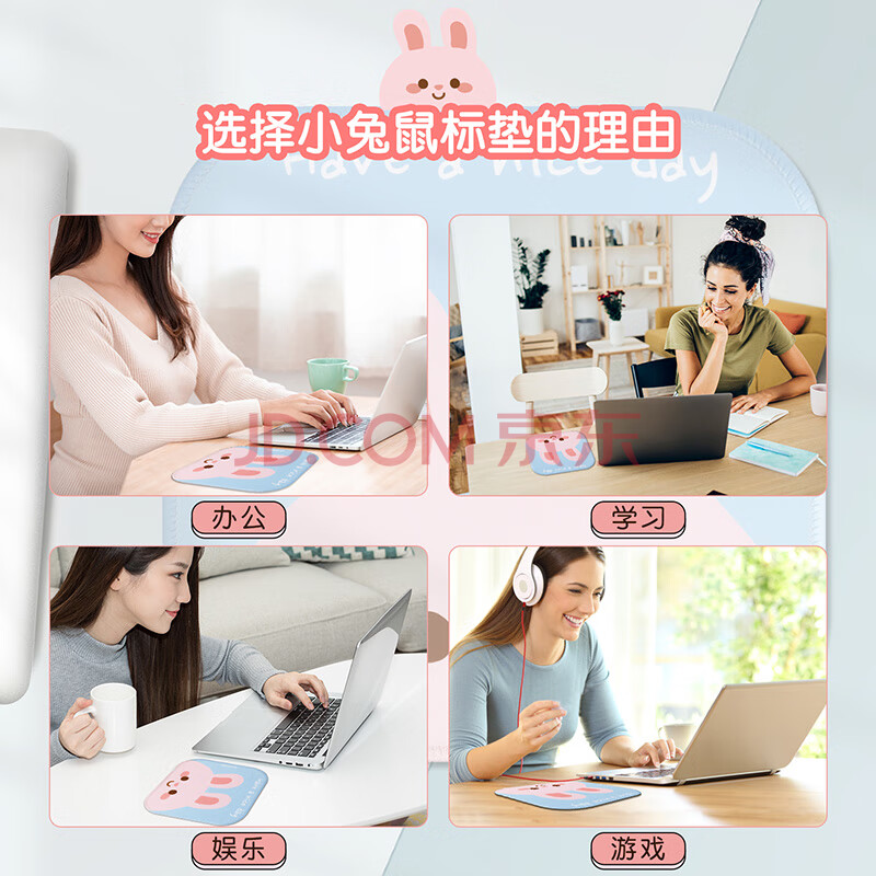 商品相册:宜适酷(EXCO)小兔子鼠标垫小号锁边动漫可爱卡通垫子电脑办公布面包边防滑便携鼠标垫可水洗9822第